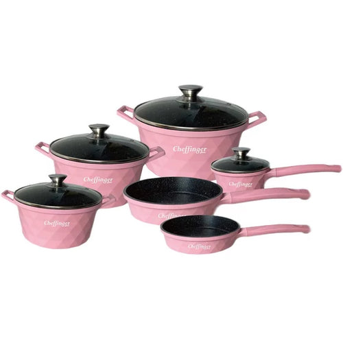 Cheffinger Indukciós edénykészlet, 10 db-os, Márvány bevonattal, Tapadásmentes, Karcálló, Gyémánt alakú.